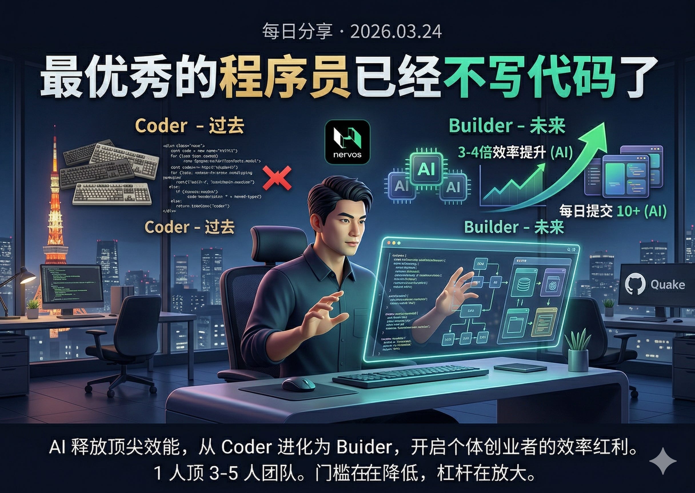 注意,这不是一个初学者用 AI 凑代码。这是一个顶尖程序员,用 AI 把自己的产出放大了三四倍。这个效率提升是非常恐怖的。