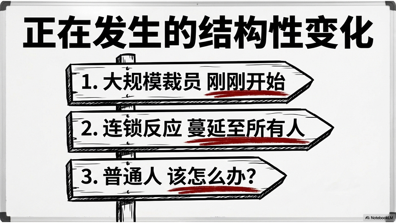 第一,为什么大规模裁员才刚刚开始。 第二,存在一个没有刹车的连锁反应,它会从科技行业蔓延到每一个人。 第三,在这样的时代,普通人到底该怎么办。