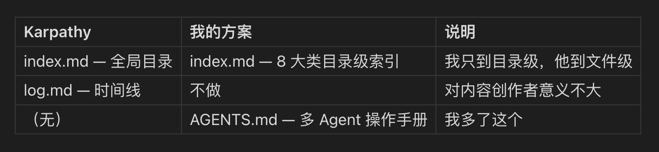 AI 界的全球顶流 Andrej Karpathy 发了一个 Gist,讲怎么用 LLM 来管理个人知识库,现在超级无敌火爆。我仔细看了一遍他的方案,从建立个人 Wiki 的角度来说,方案很优雅,但直接照搬不现实 , 因为 AI 研究者和 我这种 AI 内容创作者的需求差太远了。