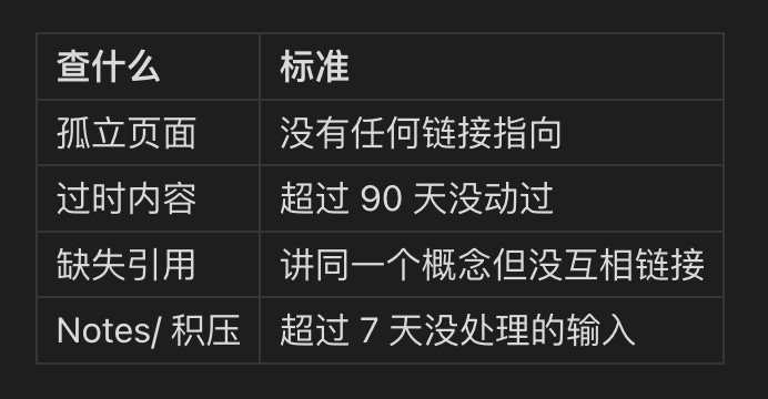 Lint(健康检查) — 定期让 AI 扫一遍,找出问题:哪些页面成了孤岛没人引用?哪些内容太久没更新该过时了?哪些概念出现了矛盾?