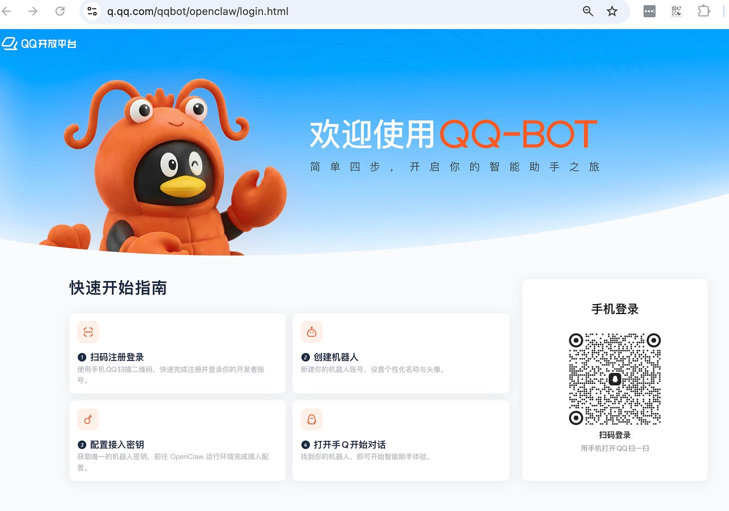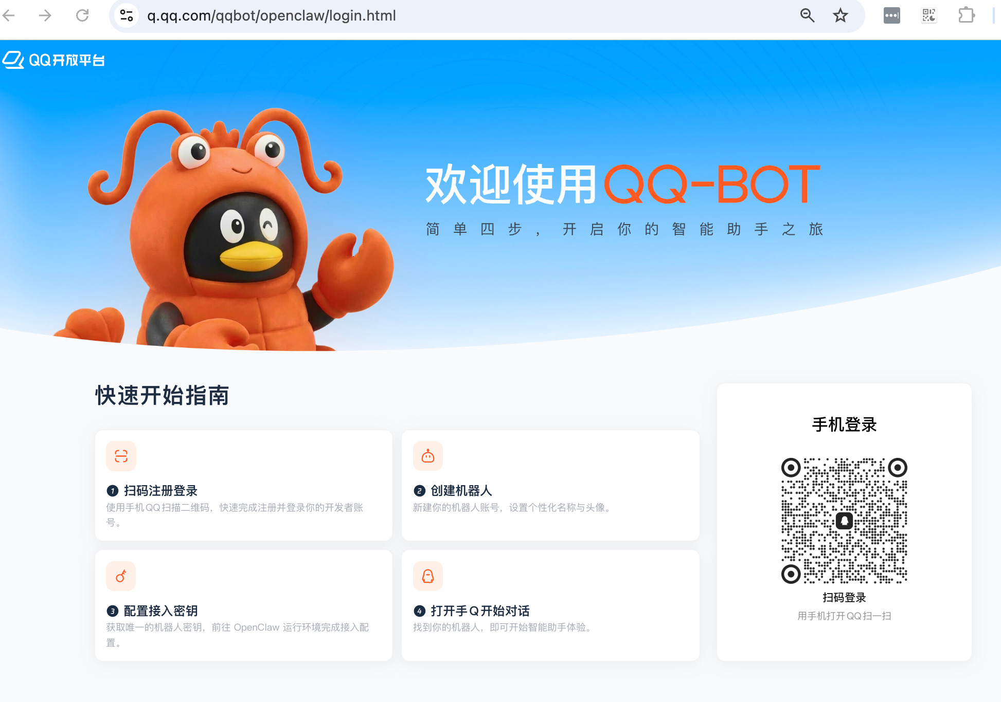 用手机 QQ 扫码登录 QQ Bot 网页。